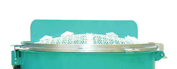 close and protected from being hit by a mud bucket or forklift. The safety grate is hinged, making access immediate. The Mix 750 is Mini-Batch